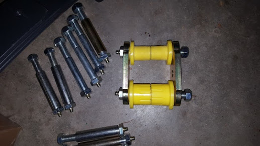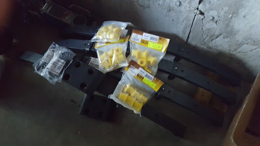 Once the frame was ordered a full suspension system was next. Old Man Emu YJ springs with Crabtree Tool & DIe http://www.crabtreetool.com/Jeep%20Parts%20Order-form.html shackle hangers and shackles.